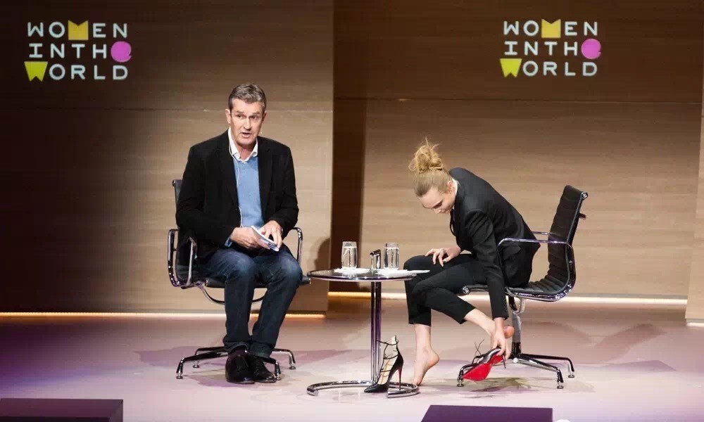 美国影星Cara曾在电视采访中趁着主持人说话的间隙,为了让脚舒服一些,脱下了自己穿的红底鞋,那一抹亮眼的红色让它的特征极为明显。此后红底鞋在世界各地的各个女性圈层中一路走红,站上了性感穿搭单品的前列!