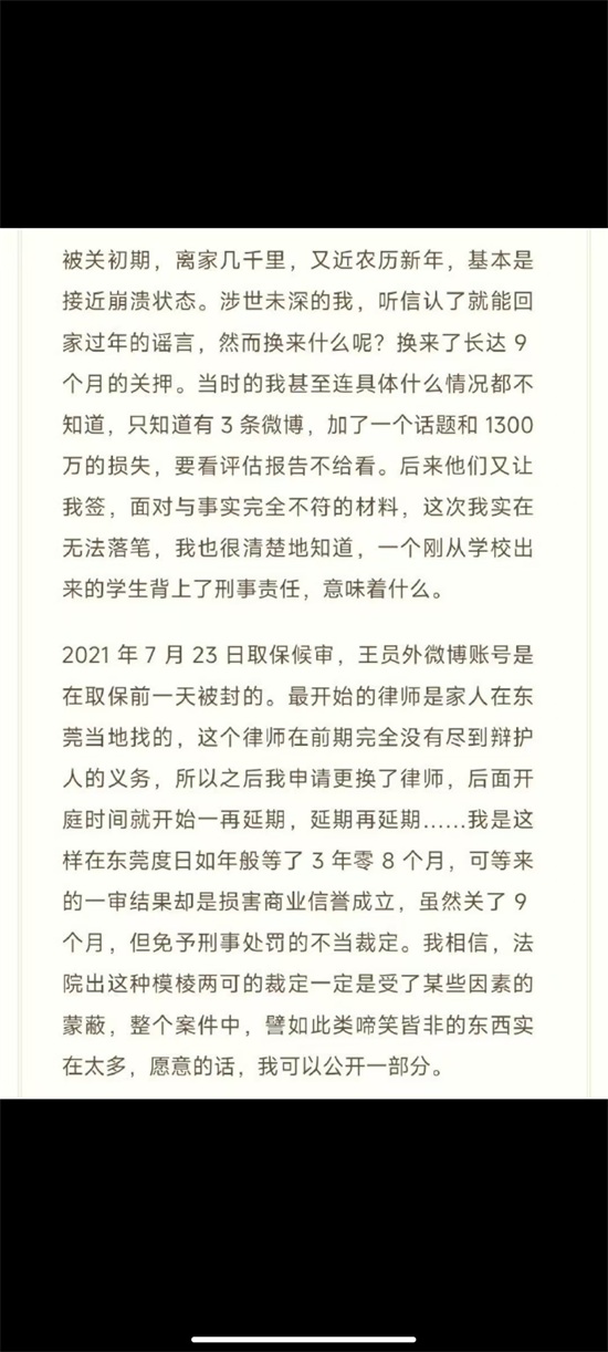 2020年,刚刚毕业2个月的王员外在农历新年前夕被警察跨省抓回东莞关了9个月,在取保候审的前一天微博被封号,开庭日期一再拖延,他在东莞度日如年地等待了3年零8个月。