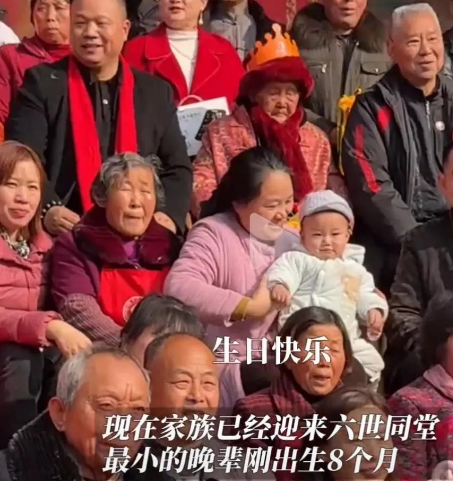 这六世同堂的盛景,如同一幅温馨动人的画卷,展现了老人一生的辛勤与付出所换来的幸福与满足。