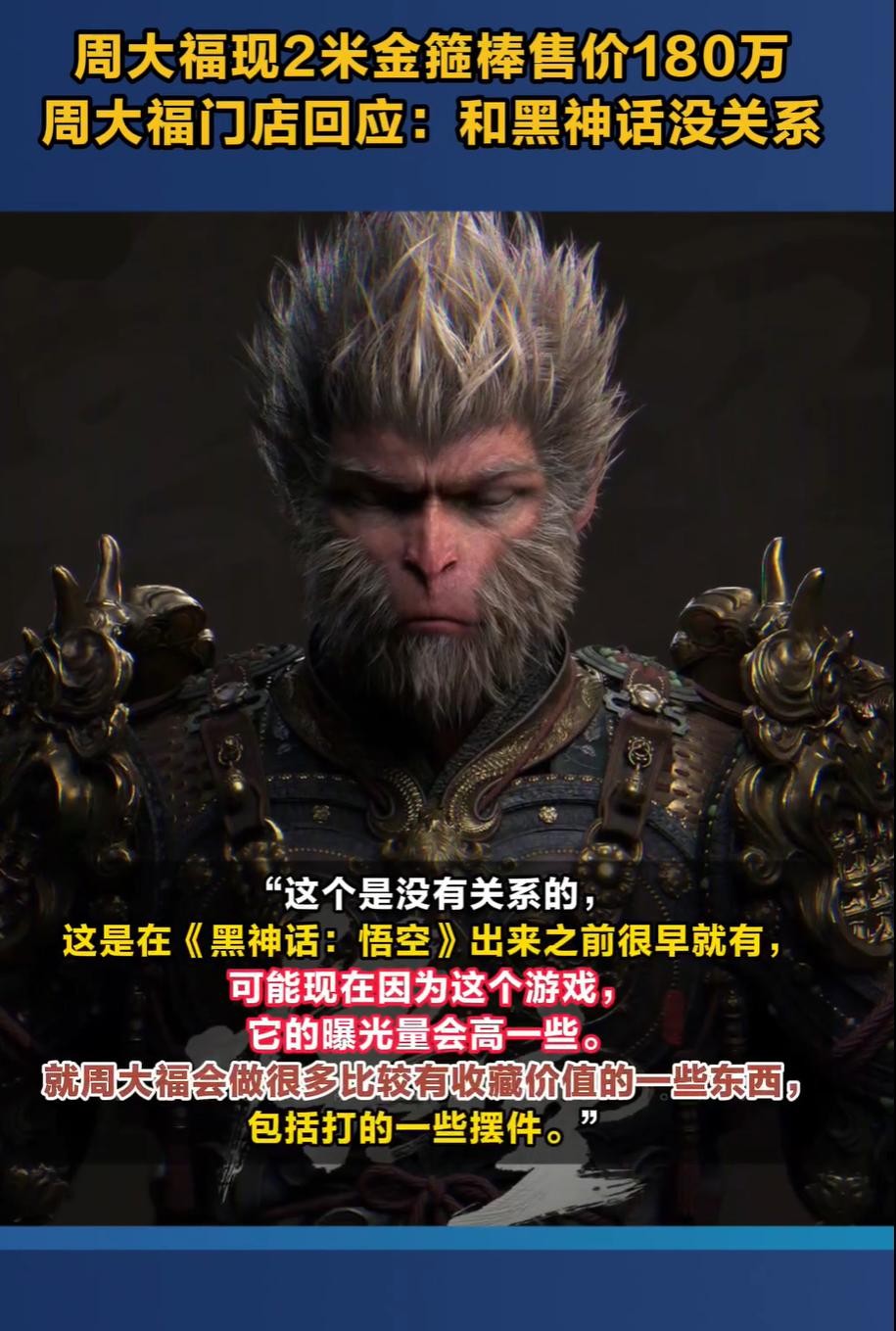 虽然有人怀疑这根金箍棒的高价是不是营销炒作,但周大福的工作人员否认了这一点。他们说这根金箍棒早就展出了,只是因为最近网络传播才火起来的,和《黑神话:悟空》没有直接关系。不过,游戏的热度确实给这根金箍棒带来了更多的曝光和关注。