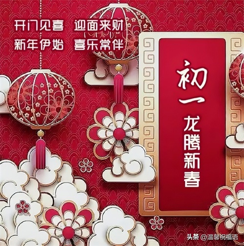 龙年大年初一到,喜迎福运滔滔。祝你心想事成,财源广进,好运连连,事事顺遂,幸福美满,笑口常开,年年有余,身体健康,龙年吉祥如意,快乐逢前。
