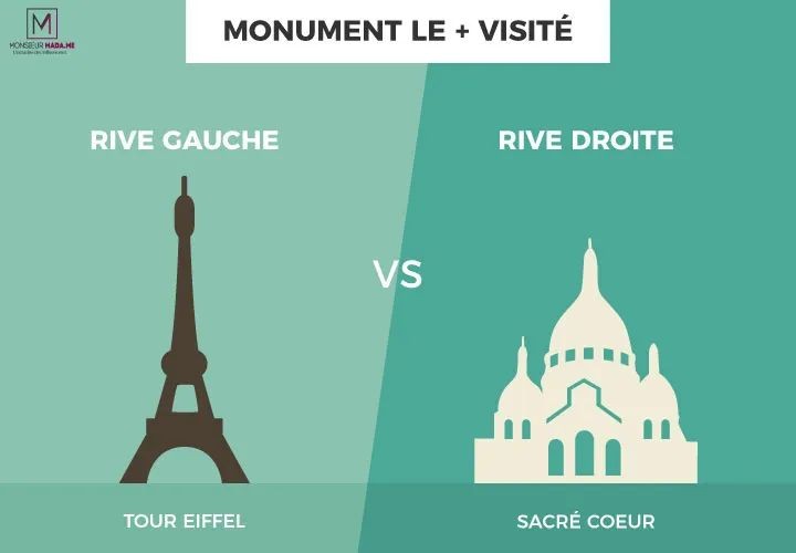 至于两个区域的标志性历史景点,左岸是埃菲尔铁塔,而右岸是圣心大教堂。