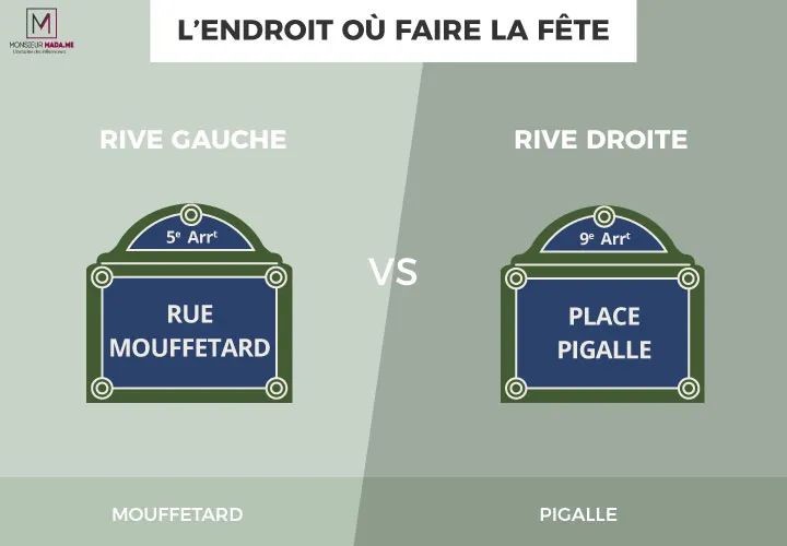 对于节庆活动的开展地点,左岸人通常会选择Rue Mouffetard,而右岸人更喜欢在Place Pigalle举办。