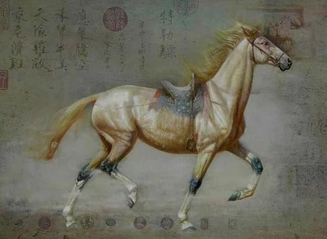 特勒骠是李世民的坐骑,排列于昭陵祭坛东侧首位。特勒骠毛色黄里透白,喙微黑色。