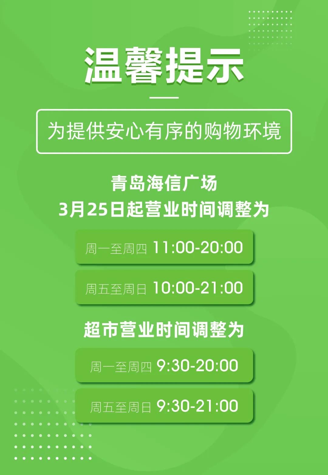 青岛各大商场最新营业时间都在这里了,快快转给身边的小伙伴吧!疫情尚未结束,外出一定记得做好防护措施!