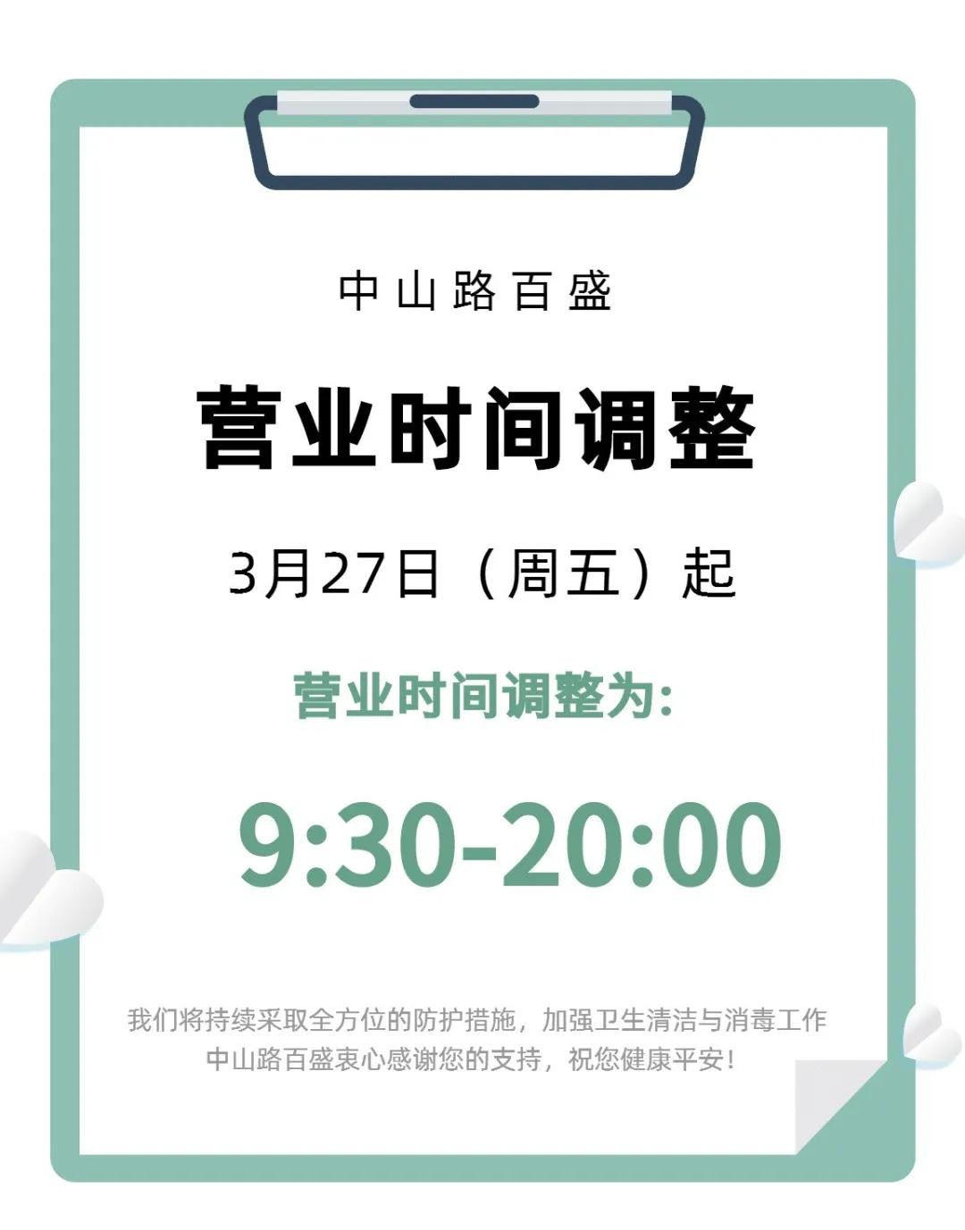 最新营业时间:一楼商场 8:30-21:00、二楼商场 9:00-21:00