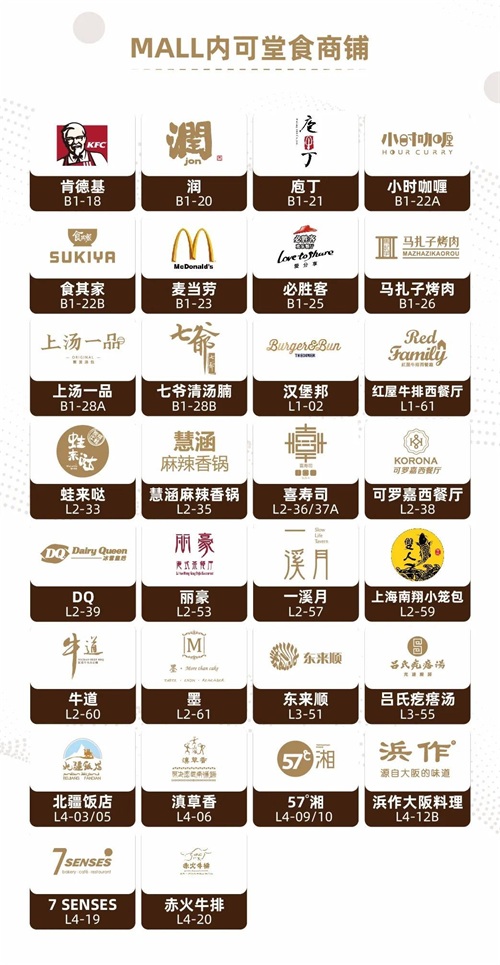 商场内已有众多餐饮品牌,逐步开放堂食。