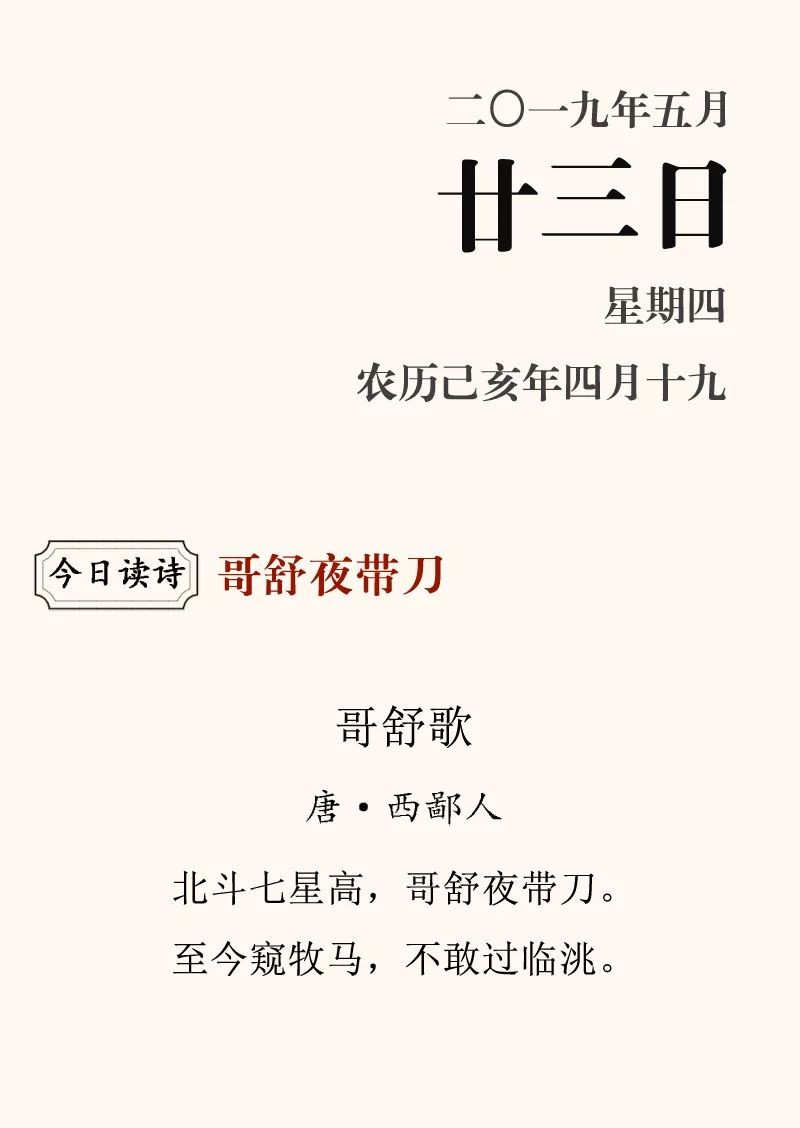 清风诗历 | 哥舒夜带刀