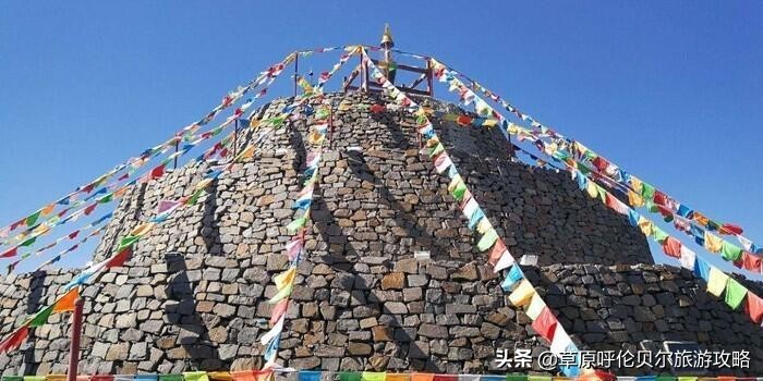 建于满洲里的西南,曾经草原上没有指路标识,行政区别和游牧分界更是无以识别,那个时候的人们都会垒石成堆作为路标和界标,也是敖包的来源。建于2005年的拉扎敖包直径13米,高6米,塔尔寺活佛关庆桑木登之弟子罗布桑丹巴扎木苏大师选址观感:此地恰似莲花一朵,居中花朵含苞待放,保佑此地能人辈出,山为金银支柱,为感谢上苍,特建敖包为凭。