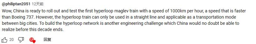超级高铁也被认为是未来科技,从央视公布的计划来看,真的不远了。对于这个计划,国外网友也十分关注,下面我们看看留言: