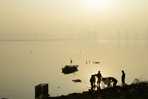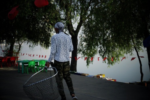 脑子活络点的还在湖边摆摊设点做起了生意。