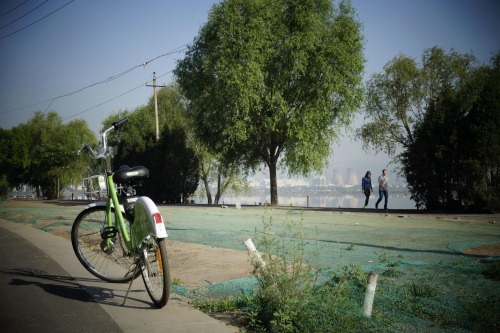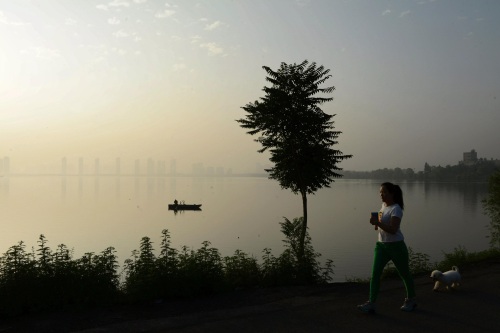 晋阳湖沿湖宽阔的堤坝上也是附近居民休闲遛弯的好地方。