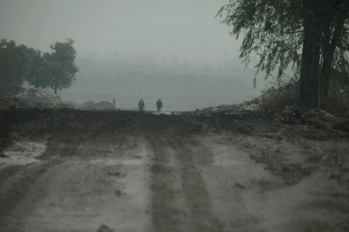 改造前一到下雨天堤坝上的路就变得泥泞不堪,难于行走。