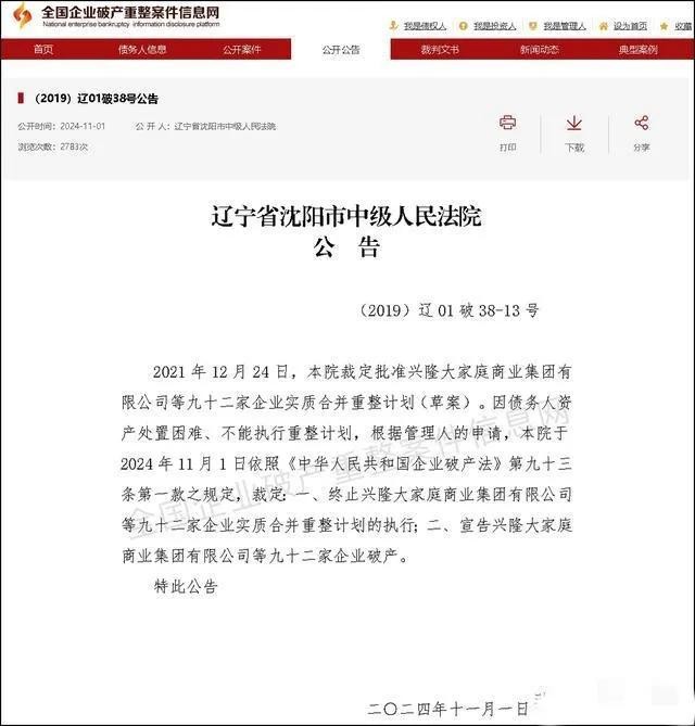 兴隆大家庭2024年11月1日宣布破产,债务谁来买单
