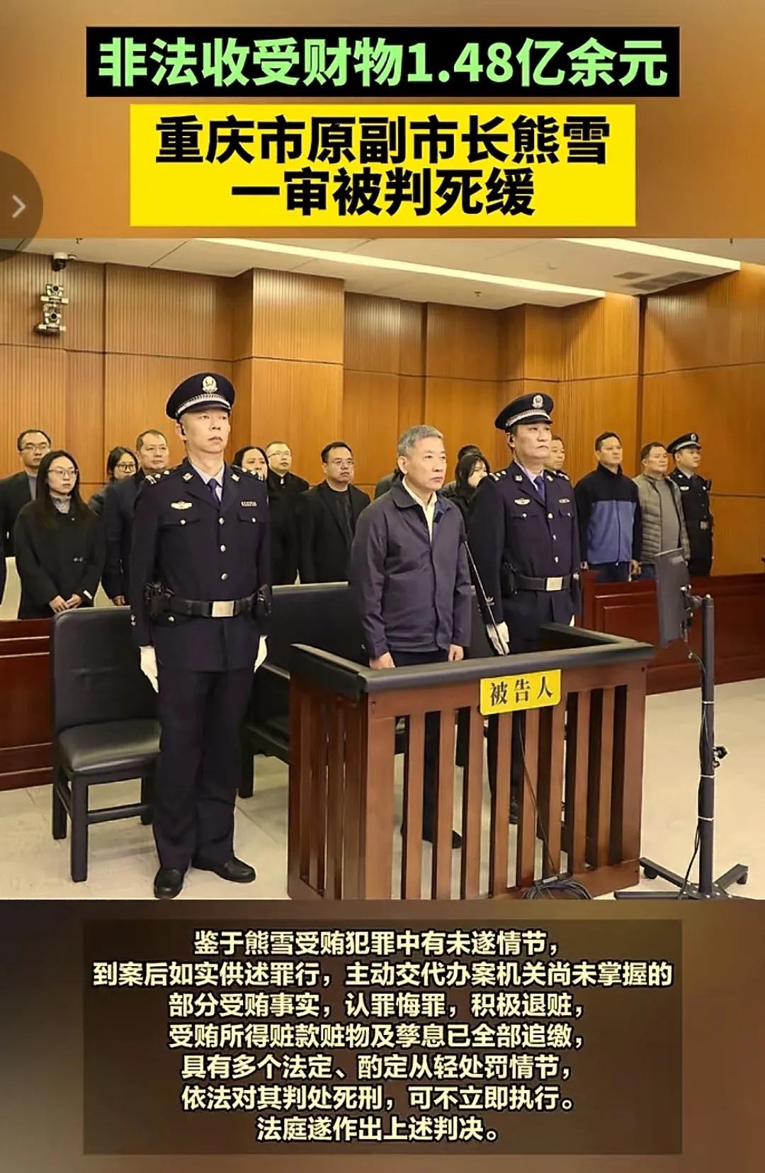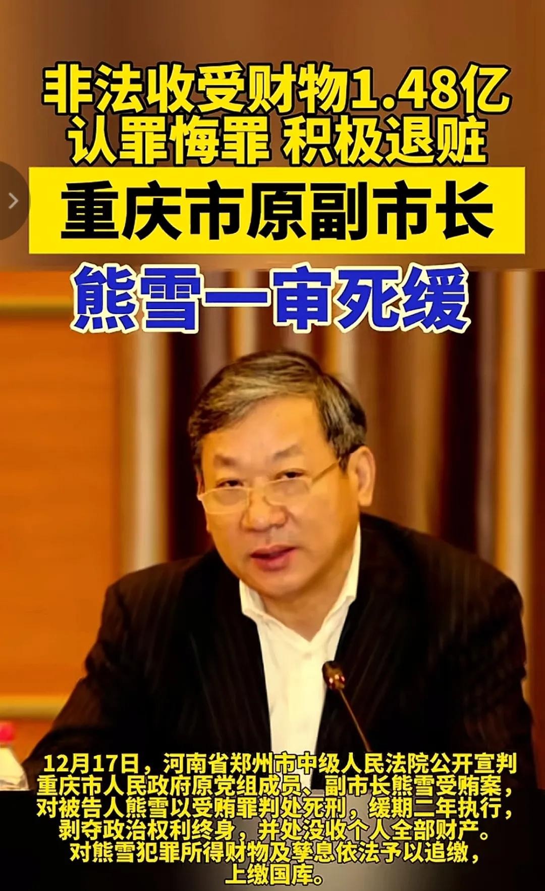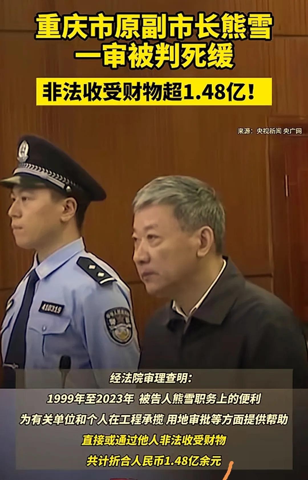 熊雪受贿案一审死缓:亿元巨贪终尝恶果,他的贪婪毁掉一生!