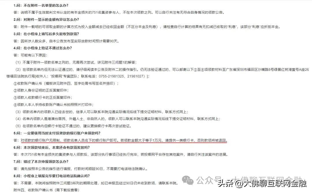 自2月20日起,可以通过线上唯一的官方小程序,办理个人领款手续,核验无误后,就是等待本次退赔的案款实际发放到账了。