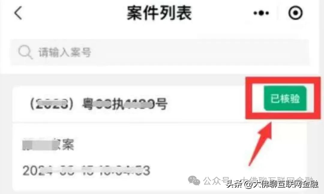 案件列表页会自动显示相关案件的名称及编号,一般不需要搜索,自动显示的案件右上角,会有标注“待核验”字样。