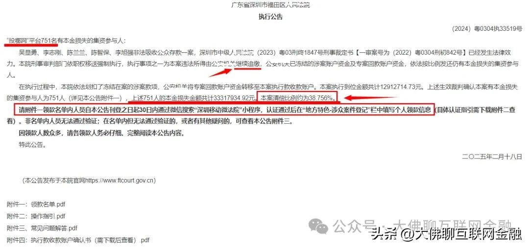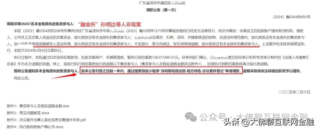 “融金所”和“投哪网”这两家平台的案件,都在2025年2月20日发布了《领款公告》,已经进入了案款领取的阶段。
