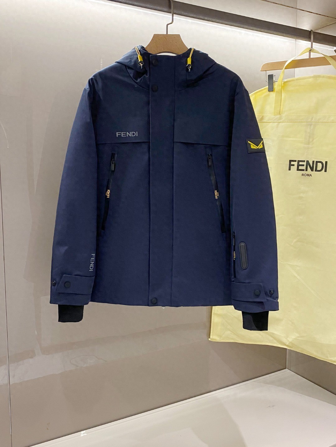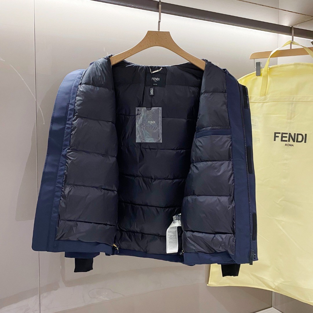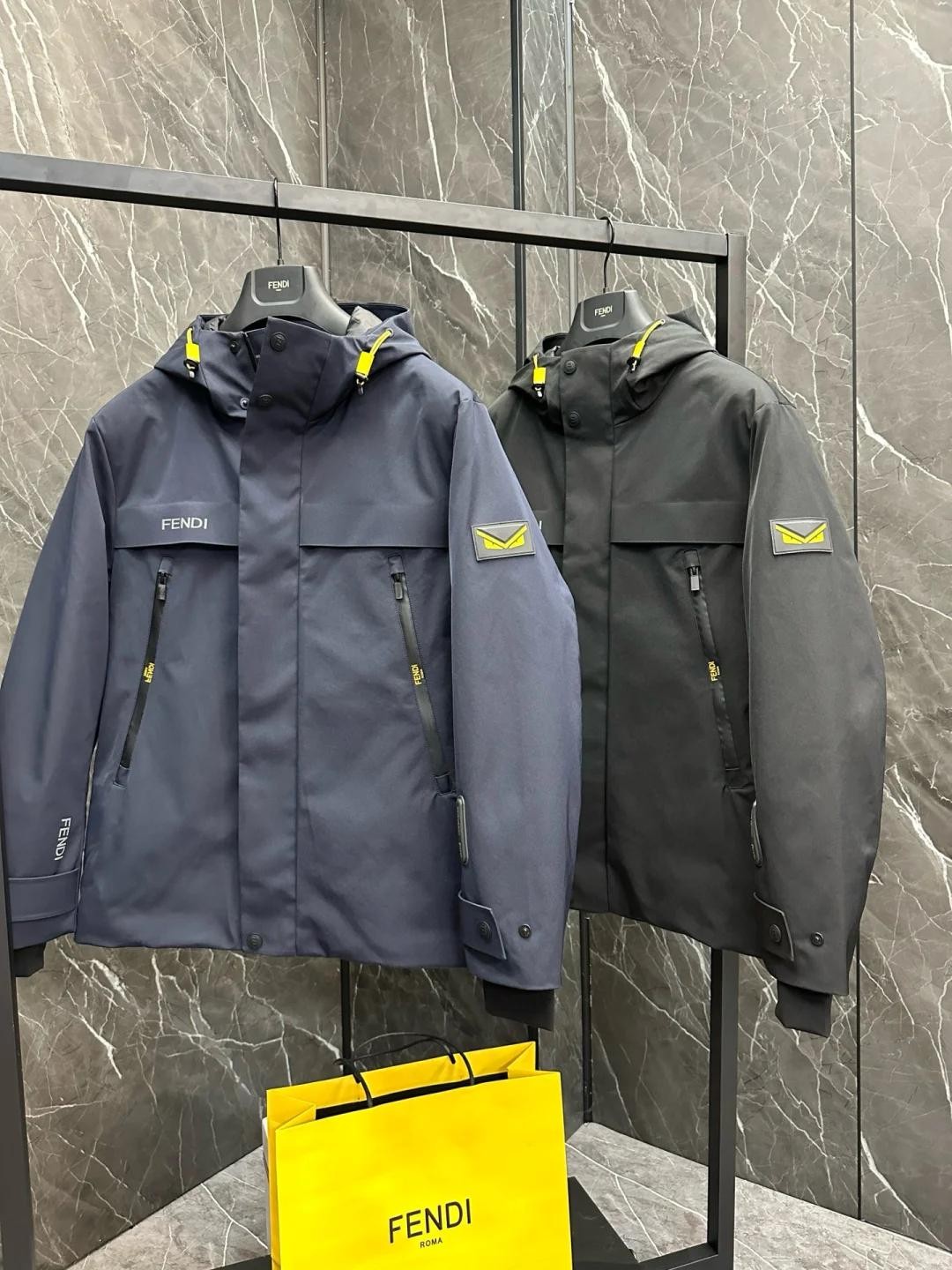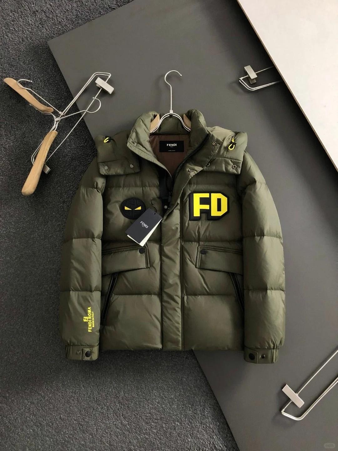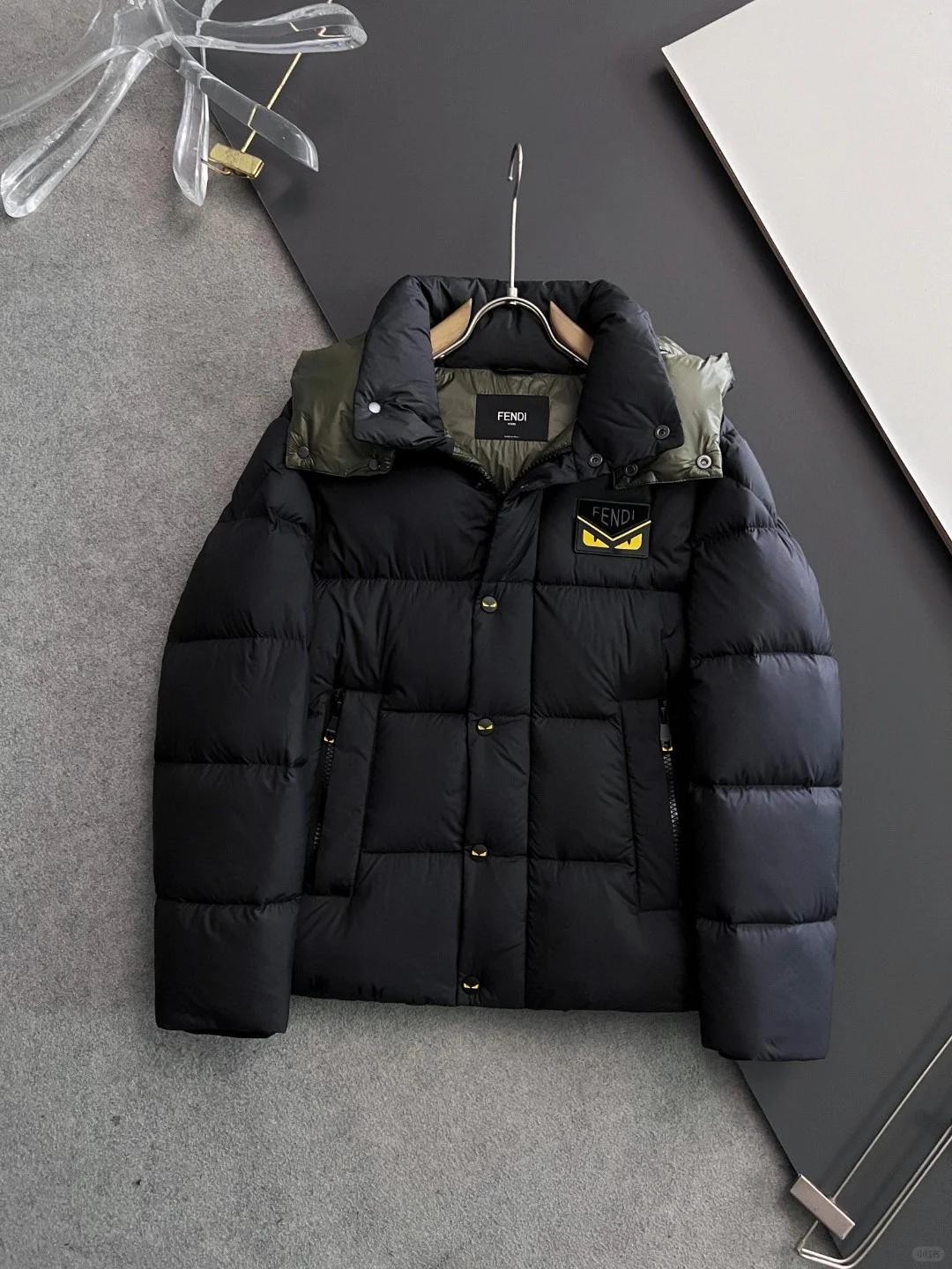 Fendi小怪兽眼睛皮标标识男士羽绒服,简约又干练的时尚风范