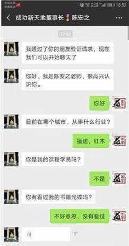 陈安之的好几个弟子就是这样成功的,他们靠背陈安之设计好的“话术”,到处拉人上课缴费,成为陈安之的左臂右膀,有的甚至自立门户,行走江湖,开课售卖。