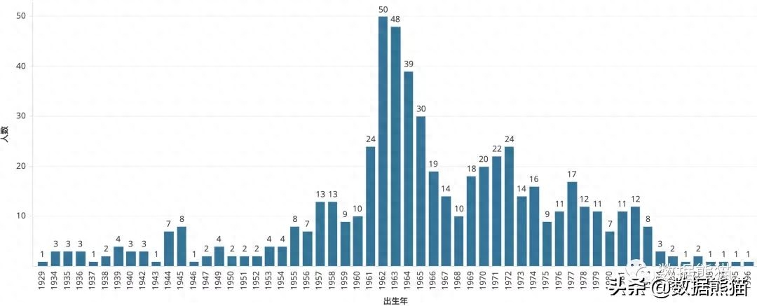 同样杰出的人才中,B类人才也非常出色,官方定义为国家级领军人才。B类人才主要集中在1957年到1982年之间。
