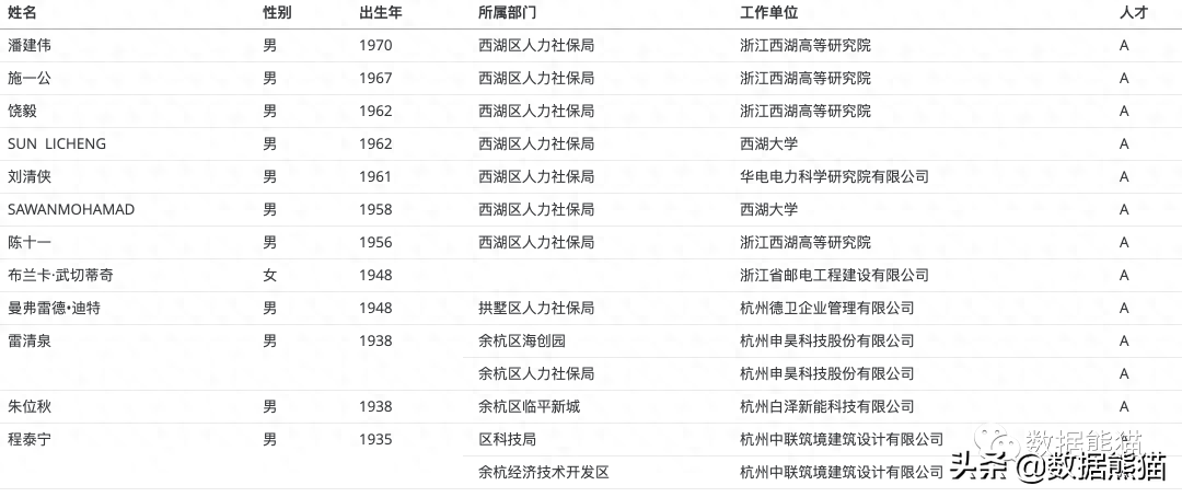 从杭州智慧人才平台的公示数据看,已经公示的A类人才如下。