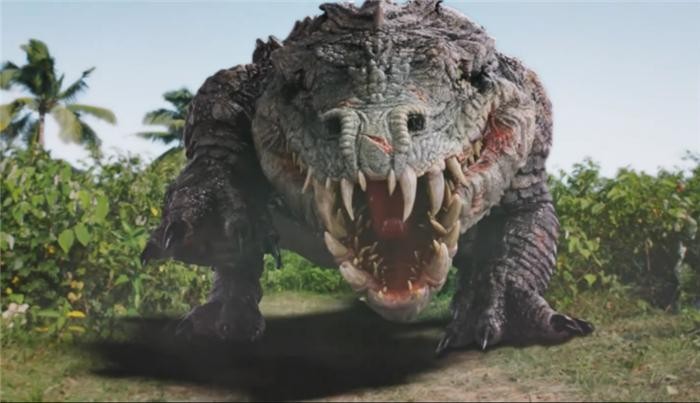二、影片中的特效真的有点差,像那个巨型鳄鱼,有的时候好大一只,有的时候又变小了,下图这只鳄鱼是不是很小呢?难怪被很多网友评论说是五毛特效。