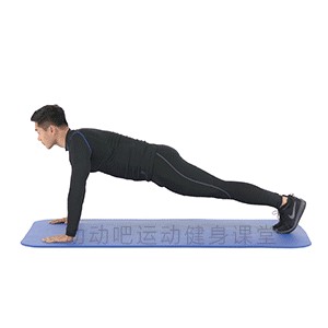 1.俯撑姿,双脚并拢,双手分开,手臂伸直,身体从头到踝呈一条直线;