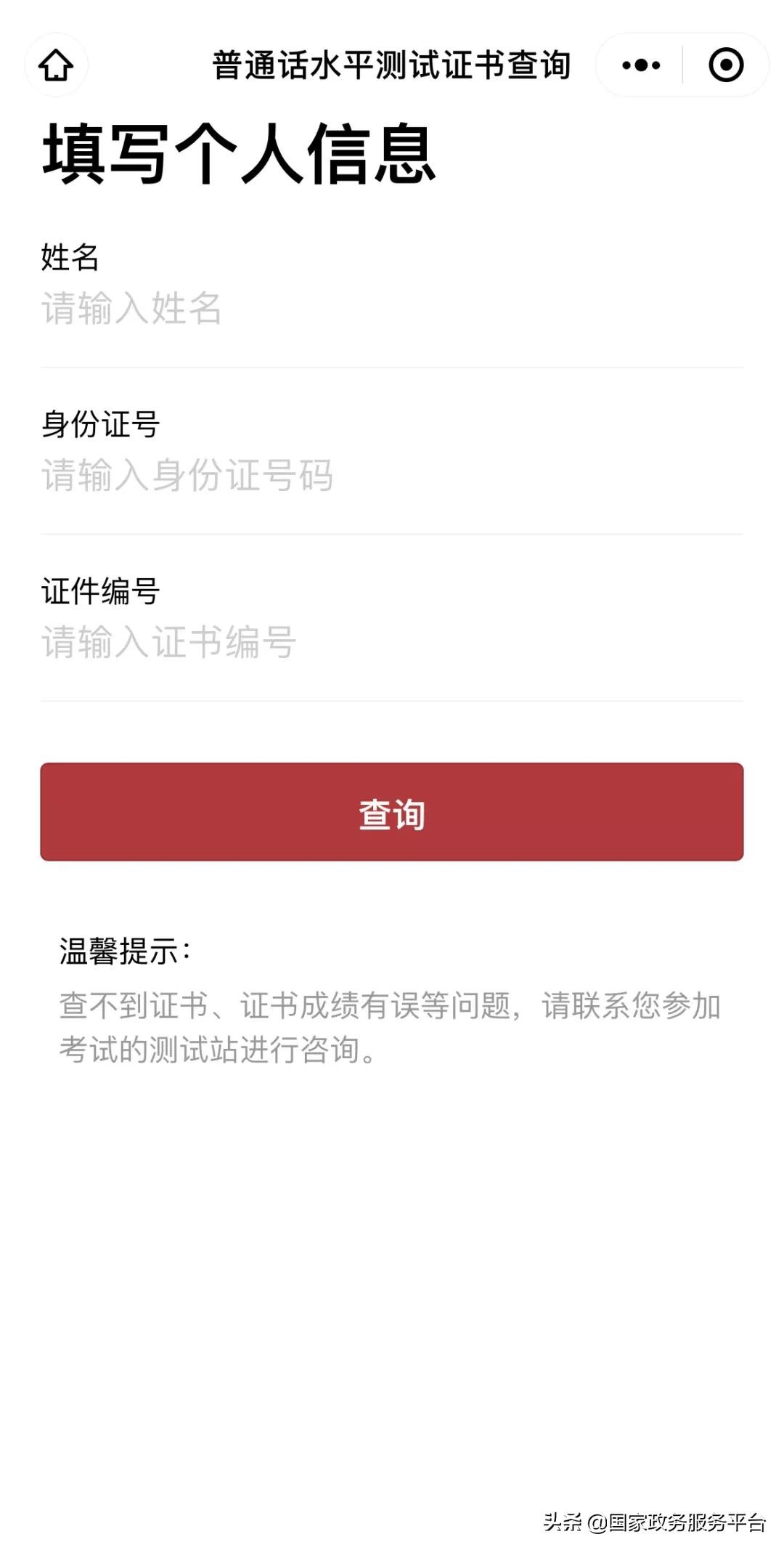 “普通话水平测试证书查询”服务