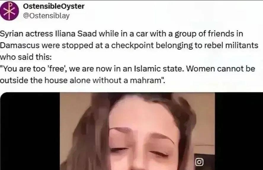 这场看似解放的变革,对叙利亚女性而言却可能是一场灾难。阿萨德政权虽有诸多问题,但因其世俗化特征,女性还能享有基本自由。而今,新政权才上台三天,就传出女性未经男性陪同不得外出的禁令。著名演员Iliana Saad的遭遇就是一个鲜活的例证。