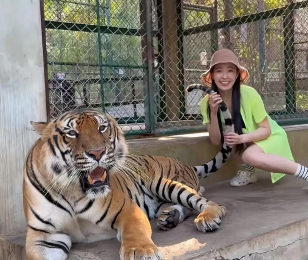 不仅如此,司雯嘉还将她的大胆发挥到了极致,俗话说老虎屁股摸不得,司雯嘉却敢走进老虎,还拿着老虎尾巴摇晃,此等胆色绝非常人能比。