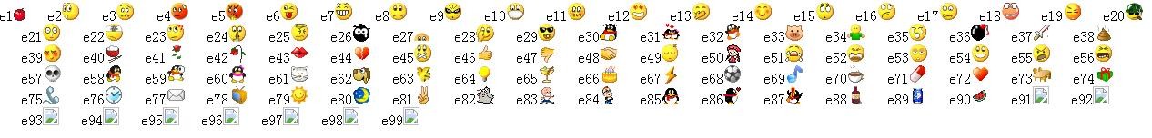 发现正常的代码是从e1开始,后来百度了[EM]E10000[/EM],发现有人在查找全部的表情符,刚开始手工在说说里面一批一批试,,,,好费时间哦。