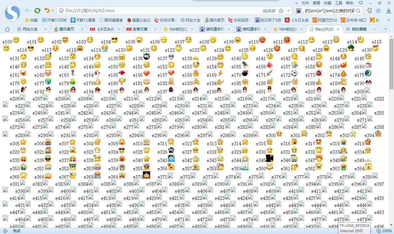 如果自己要,可以把以上JS代码用记事本保存成HTML文件,接着点开HTML文件就可以看到具体表情代码了。