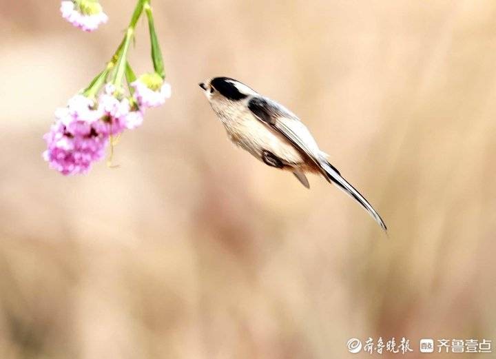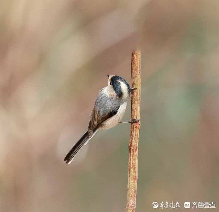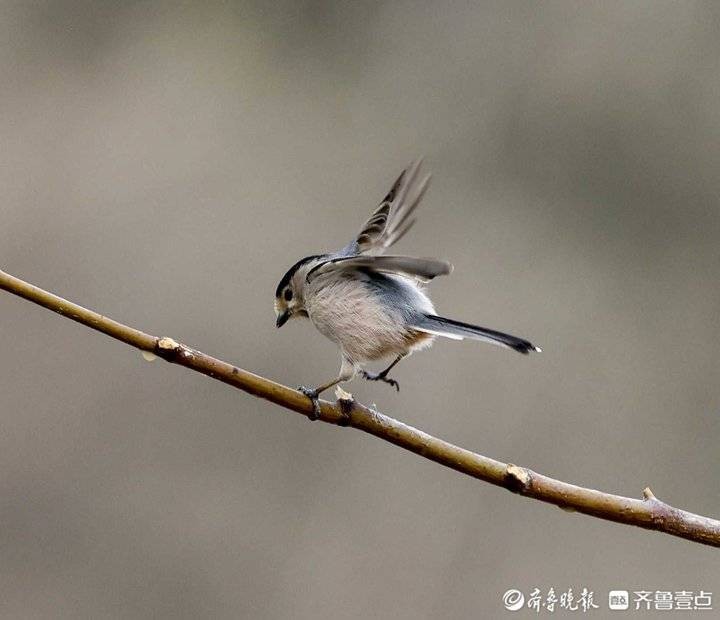 银喉长尾山雀体型纤小,全长10.8-13.1厘米,翅长5.2-6.0厘米,尾长6.0-7.8厘米。该鸟头顶羽毛较丰满且甚发达,体羽蓬松呈绒毛状,头顶、背部、两翼和尾羽呈现黑色或灰色,下体纯白或淡灰棕色,向后沾葡萄红色,部分喉部具暗灰色块斑,尾羽长度多超过头体长。雌性羽色与雄鸟相似。虹膜褐色;嘴黑色;脚棕黑色。