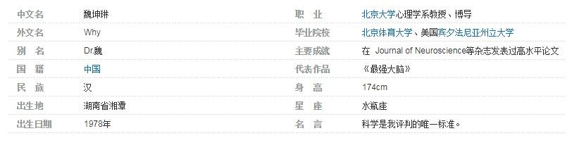 魏坤琳,1978年出生于湖南湘潭,北京大学心理学系教授、博导。2000年北京体育大学本科毕业;2007年获宾夕法尼亚州立大学博士学位,主要研究人脑的工作方式,以及人是如何控制运动的。