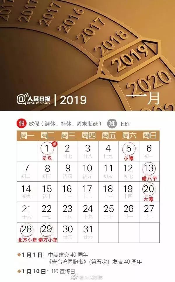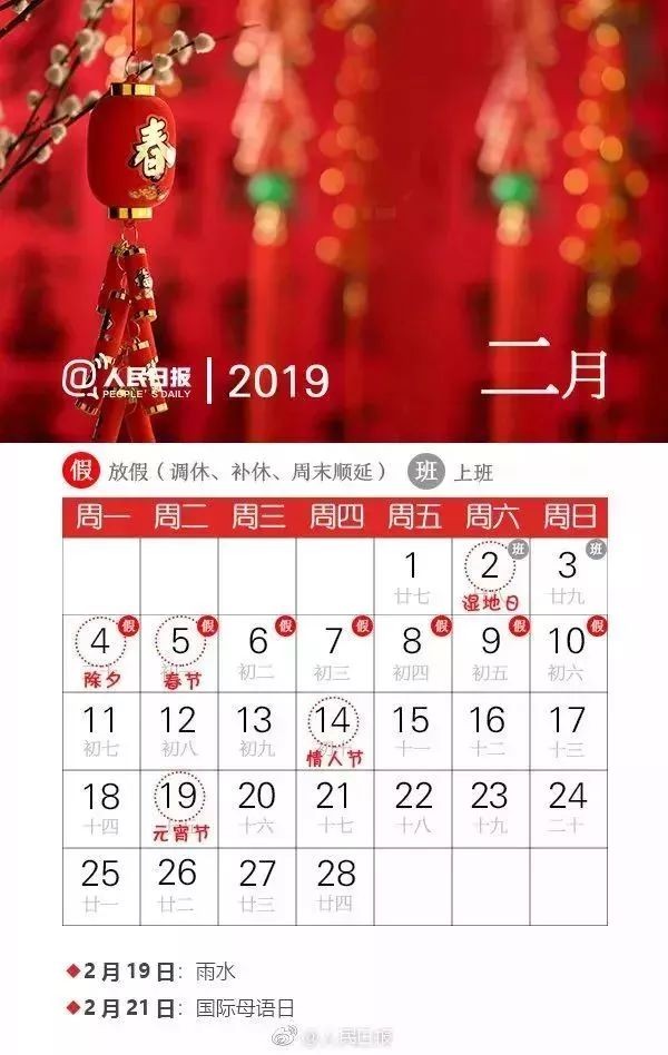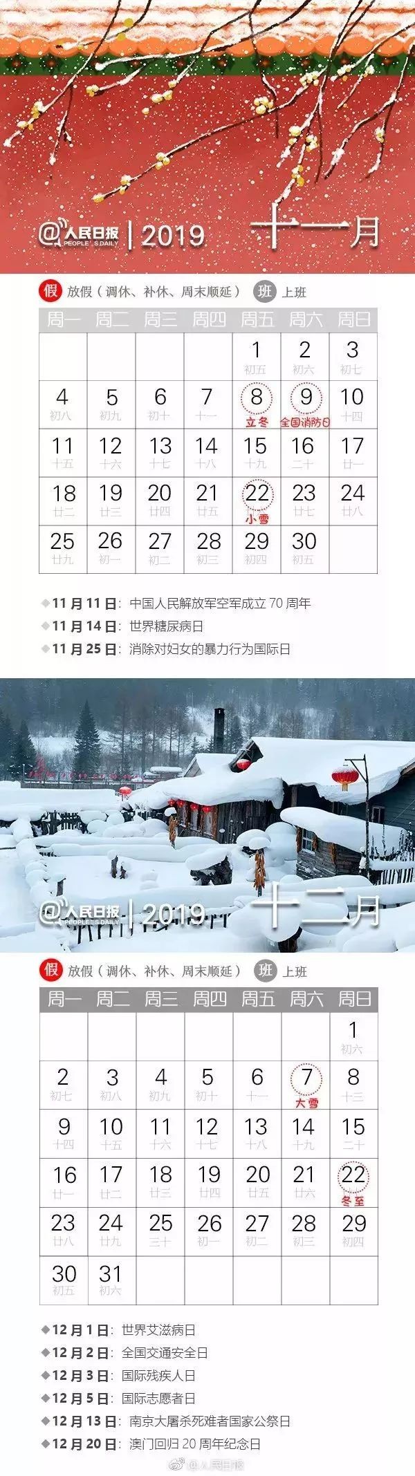 赶快收藏!2019年节日日历,原来有这么多假期!