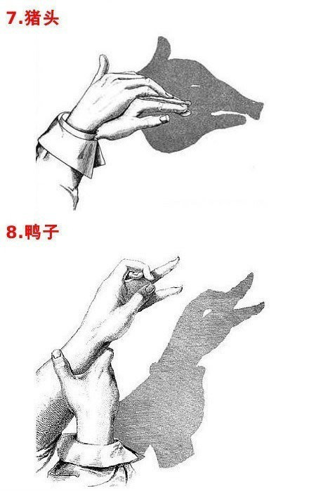 这些图案都是小时候经常玩的手影,先收藏没事和小宝贝们玩玩!“像不像,三分样”,一定要试试哦!