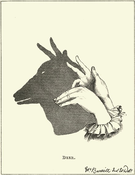 我会给推荐一种我小时候玩的游戏手影,手影只要一烛或一灯,通过手势的变化,创造出无穷形象~