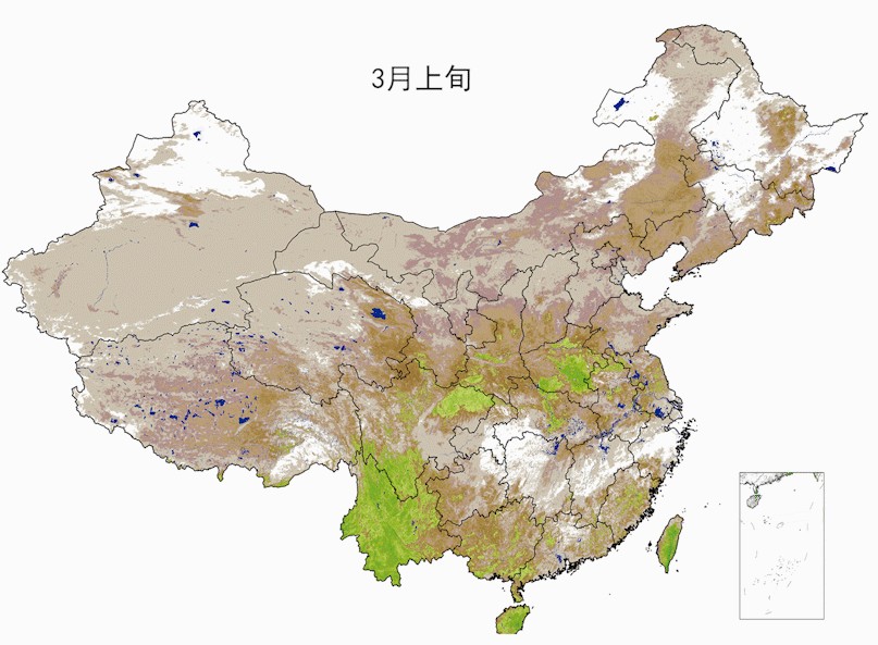 3月上旬到4月下旬,气象卫星植被指数图。绿色植被范围的变化,代表了春天的北伐进程。