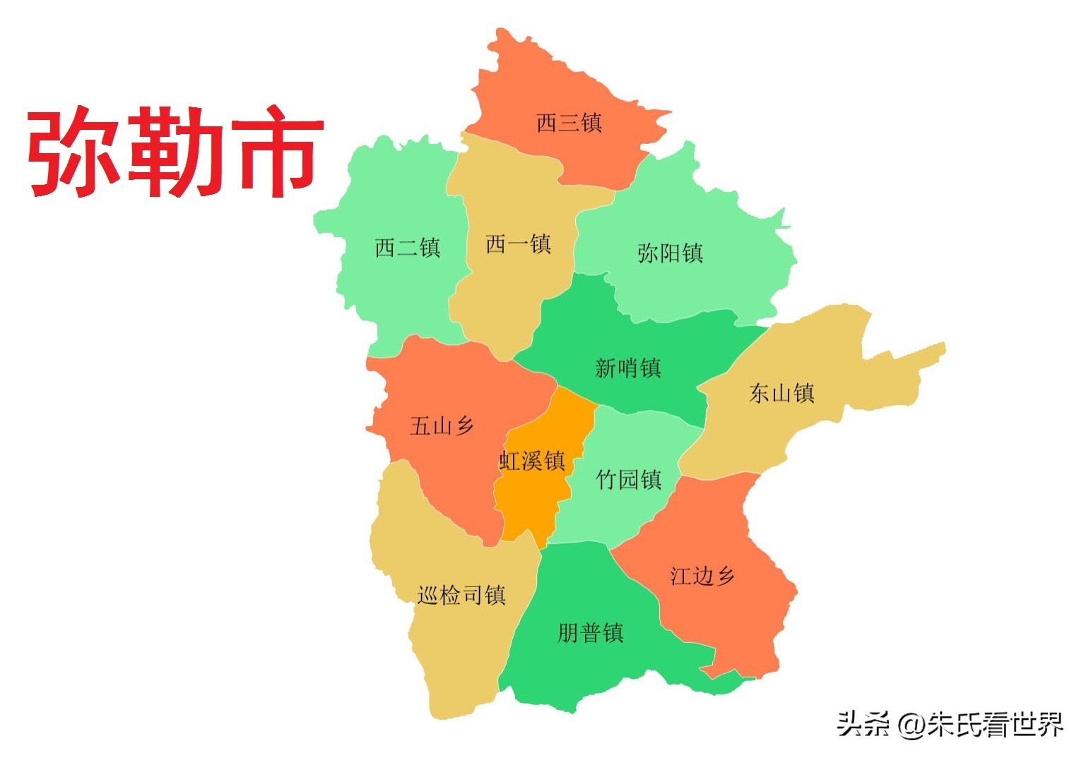 弥勒市总面积4004平方千米,辖3个街道、9个镇、2个乡,即弥阳街道、太平街道、福城街道、新哨镇、虹溪镇、竹园镇、朋普镇、巡检司镇、西一镇、西二镇、西三镇、东山镇、五山乡、江边乡。截止2022年末,弥勒市户籍人口为55.35万人。