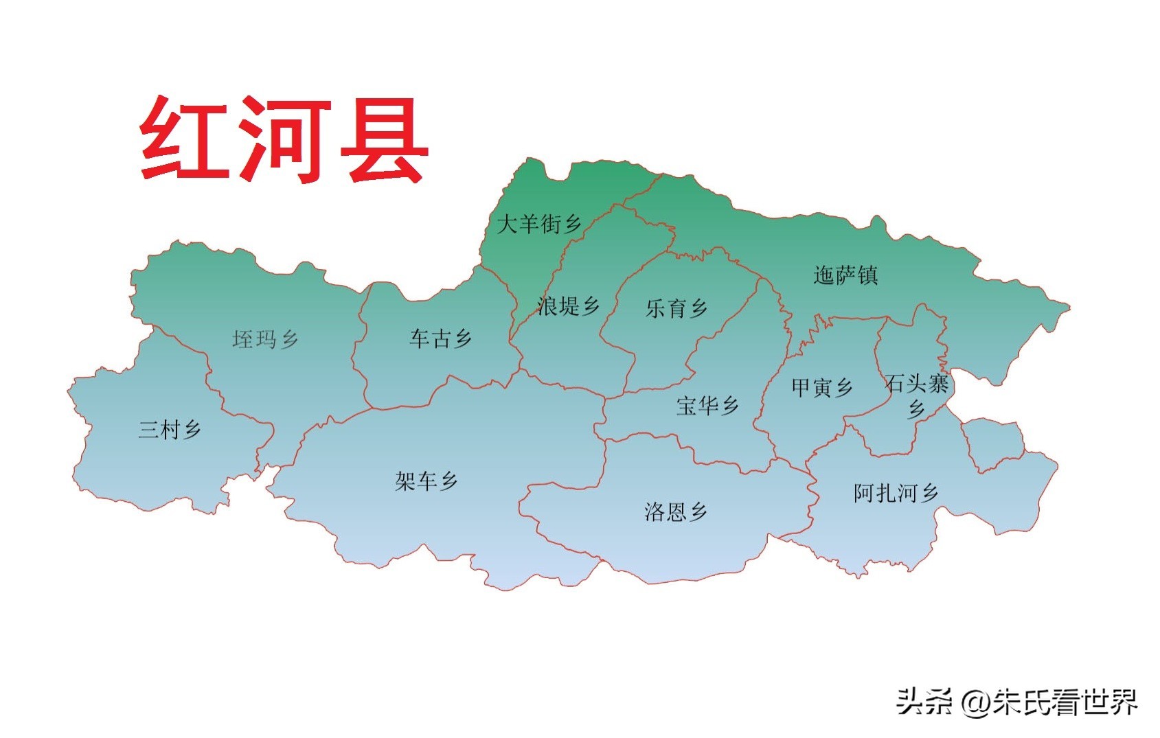 红河县总面积2028平方千米,下辖5个镇、8个乡,即迤萨镇、 甲寅镇、 宝华镇 、乐育镇 、浪堤镇 、洛恩乡 、石头寨乡 、阿扎河乡、 大羊街乡、车古乡、架车乡、 垤玛乡、 三村乡。根据第七次人口普查数据,截至2020年11月1日零时,红河县常住人口为28.46万人。