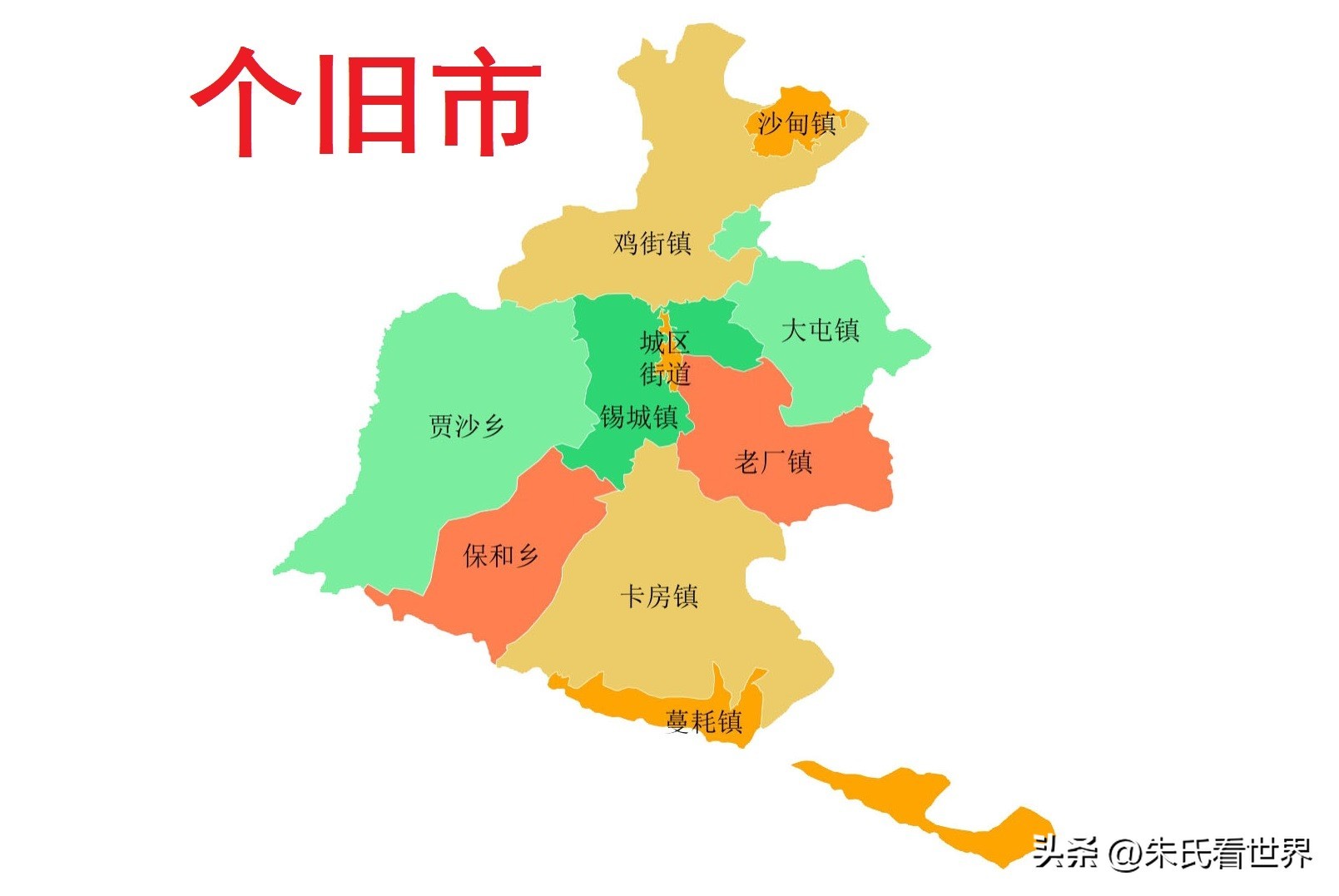 蒙自市,市政府驻文澜街道。位于红河州东部,市境东与文山市相连,南临屏边苗族自治县,西邻个旧市,北接开远市。