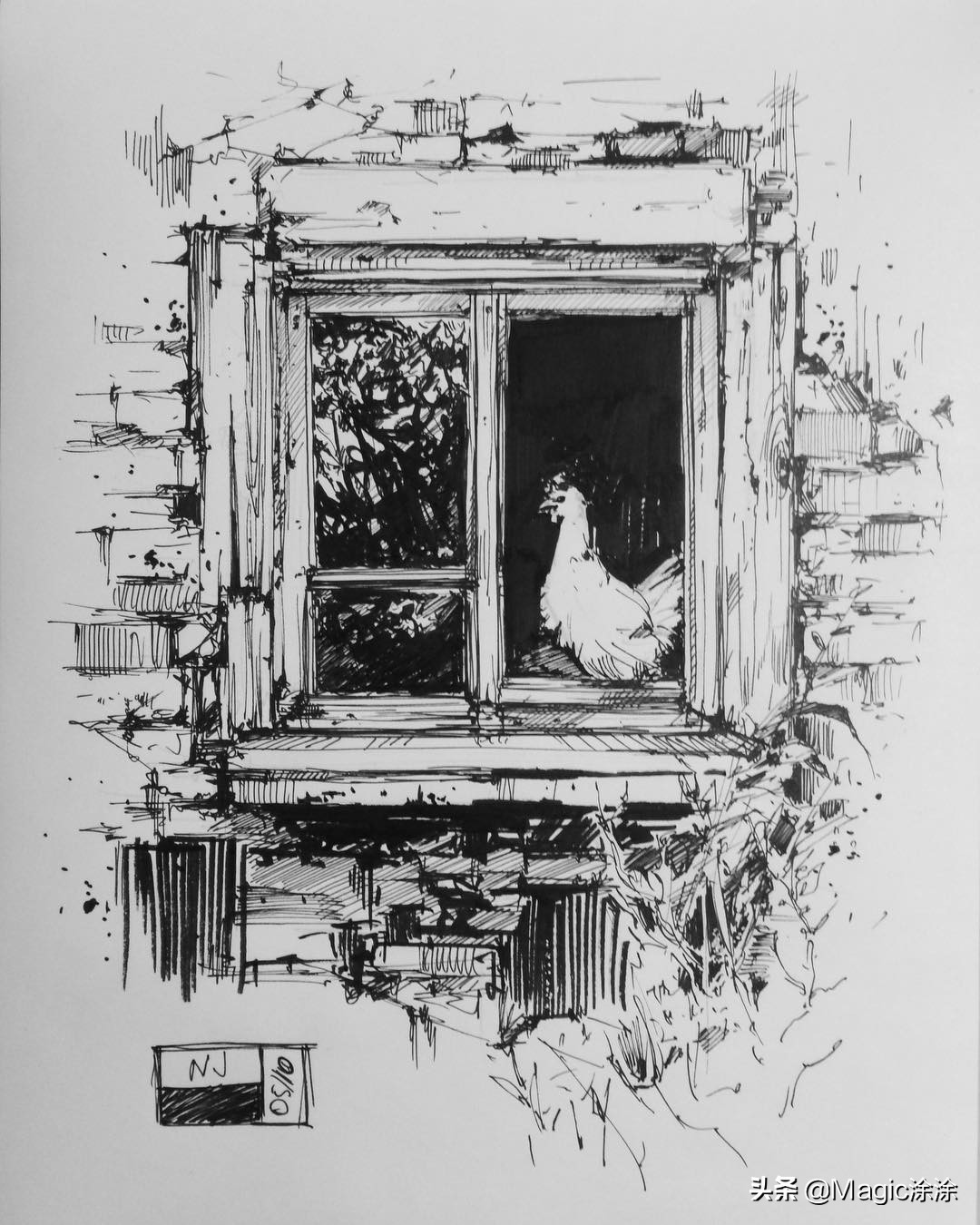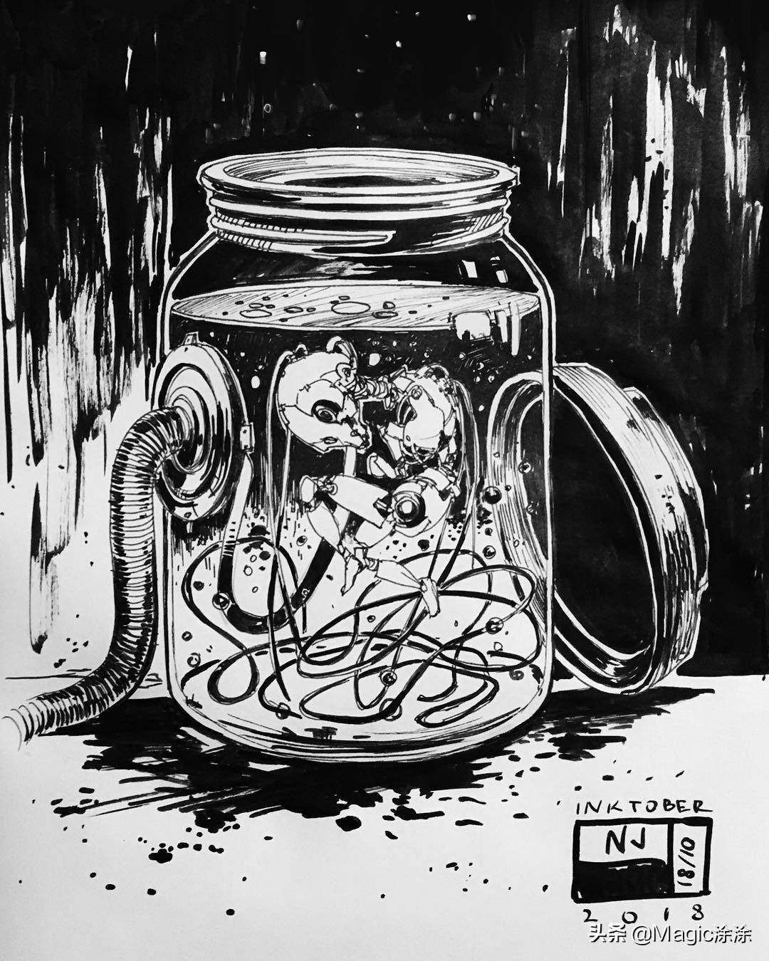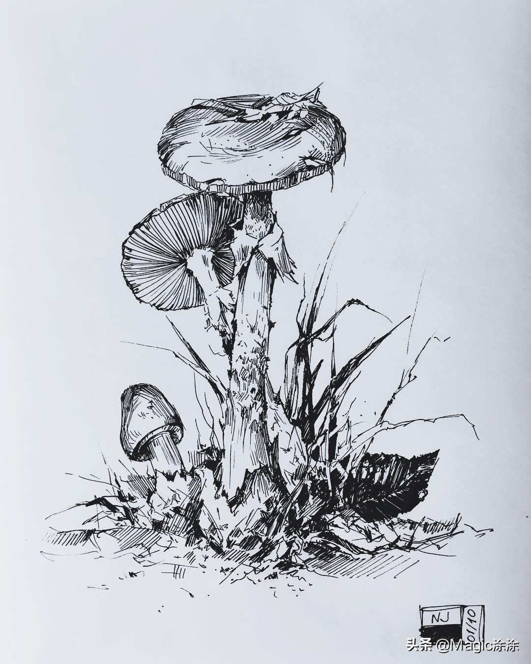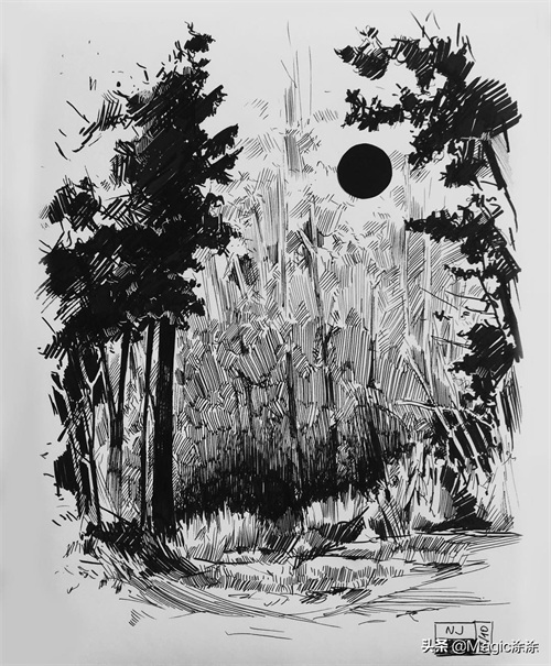 今天涂涂就为你们分享一组由作者ninjajo_art绘制的黑白风格插画,一起来学习一下作者是如何用线条来表现不同的场景。