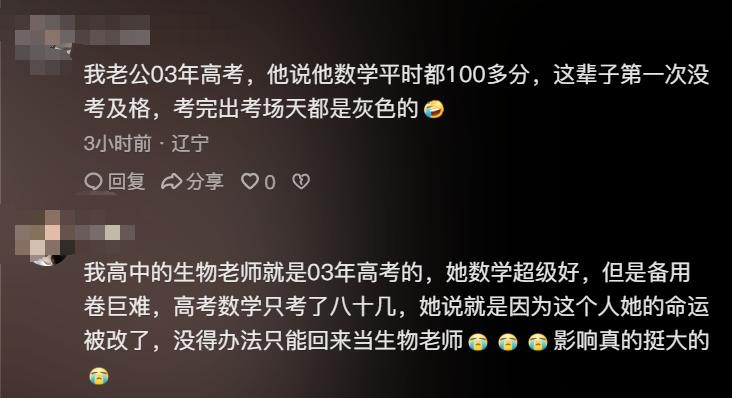 我同学他们到现在也都不能给我们说,他们当年备用卷写的是啥