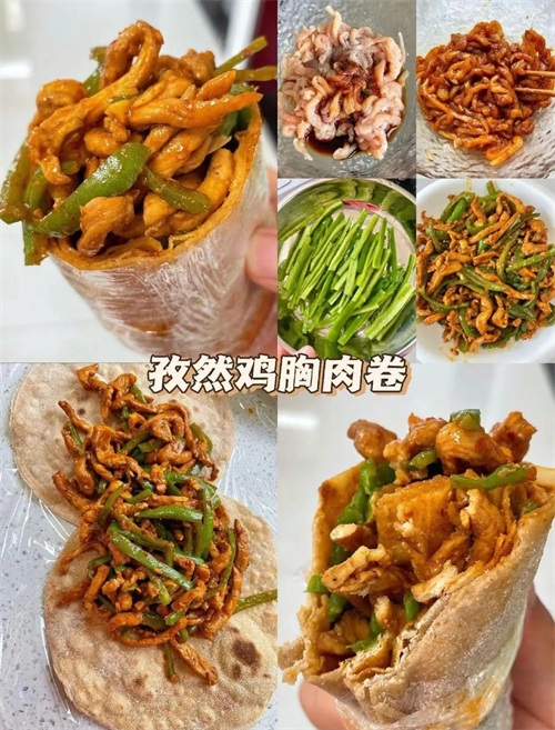 「孜然鸡胸肉卷」