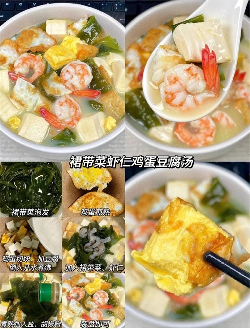 「裙带菜虾仁鸡蛋豆腐汤」