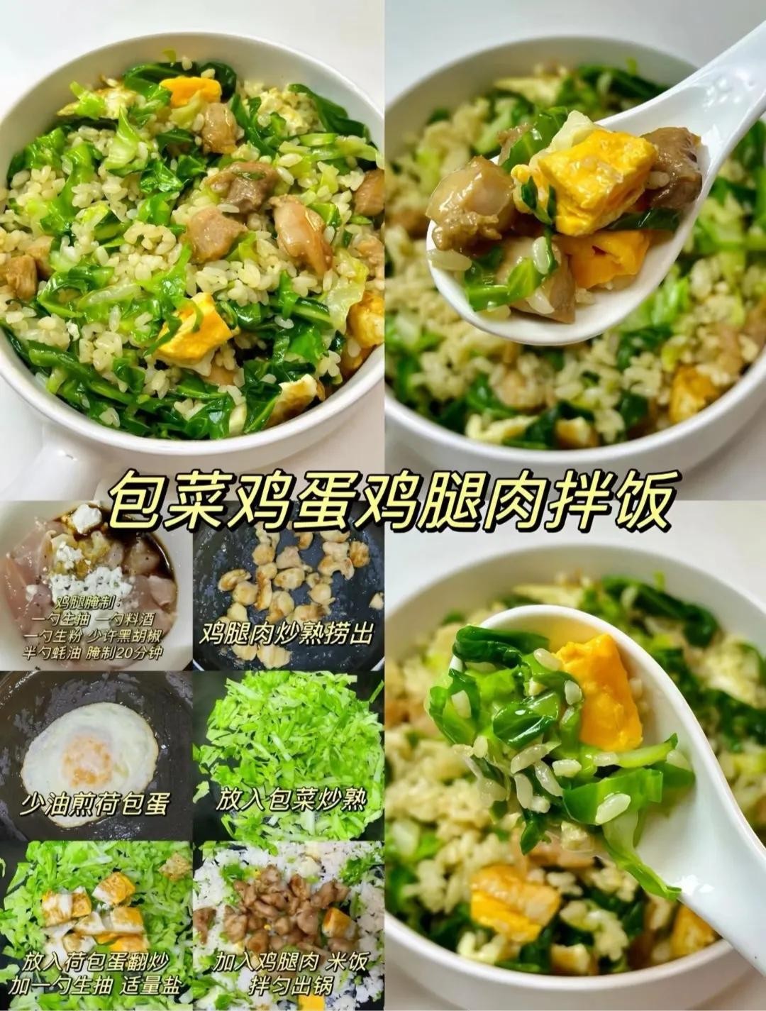 「包菜鸡蛋鸡腿肉拌饭」