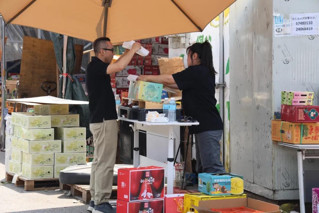 来到市场内,清甜多汁的泰国椰青、莹白如玉的山竹、金黄诱人的马来西亚凤梨……各类热带水果竞相登场,掀起一阵销售热潮。