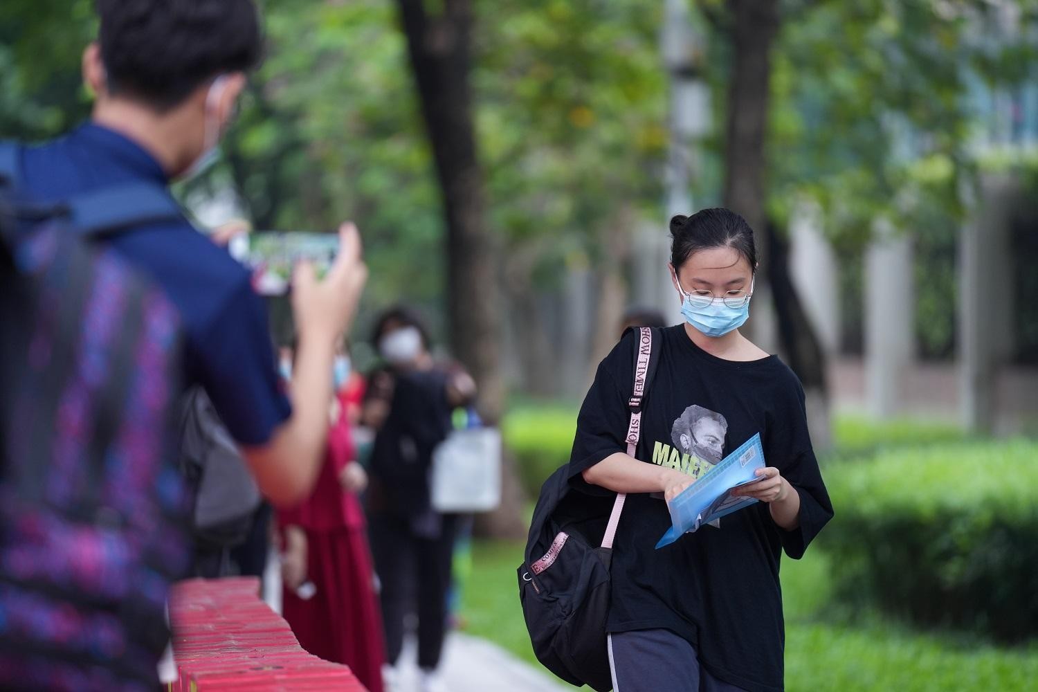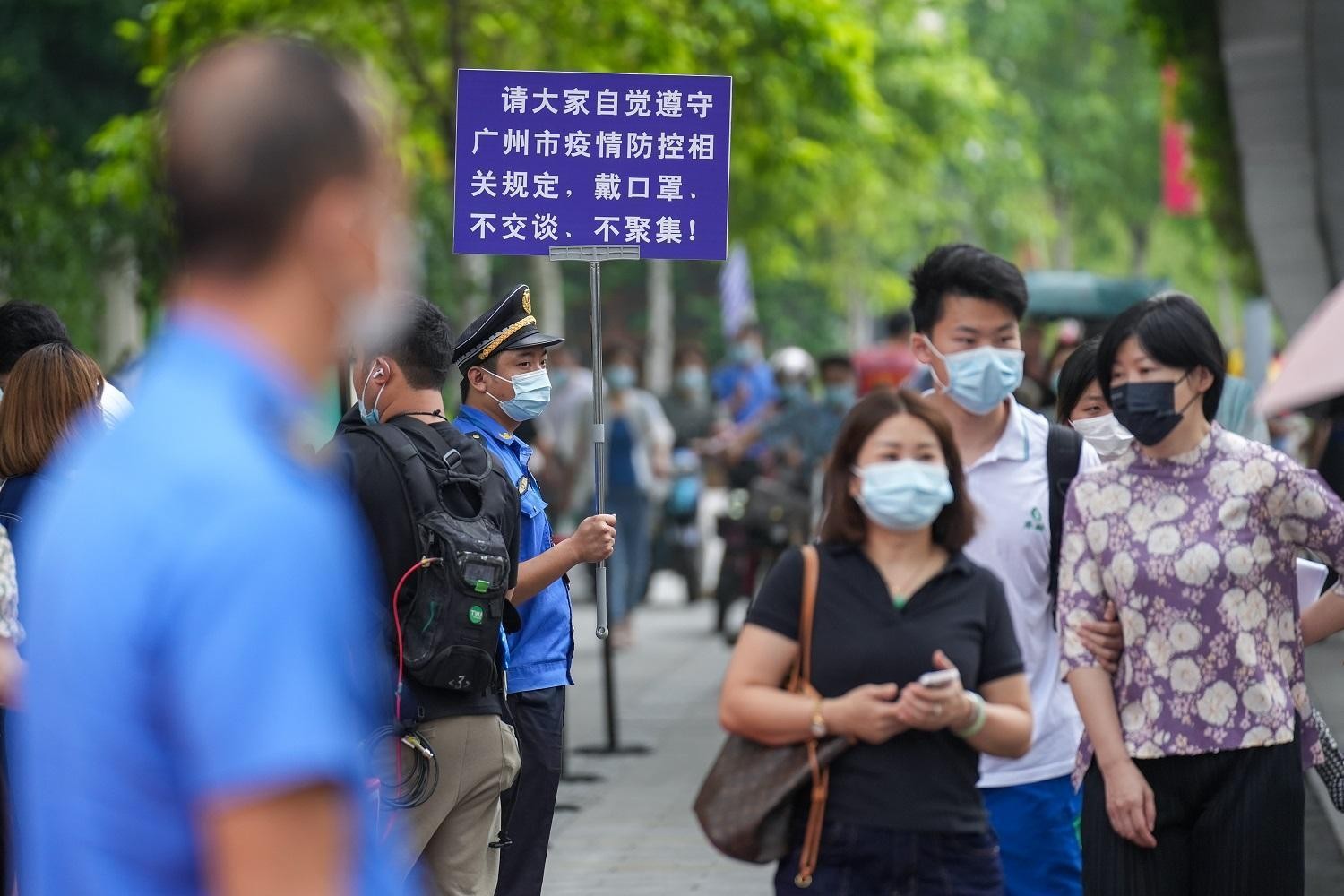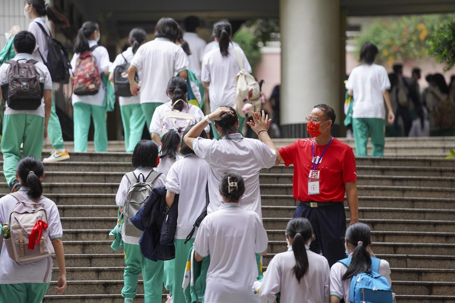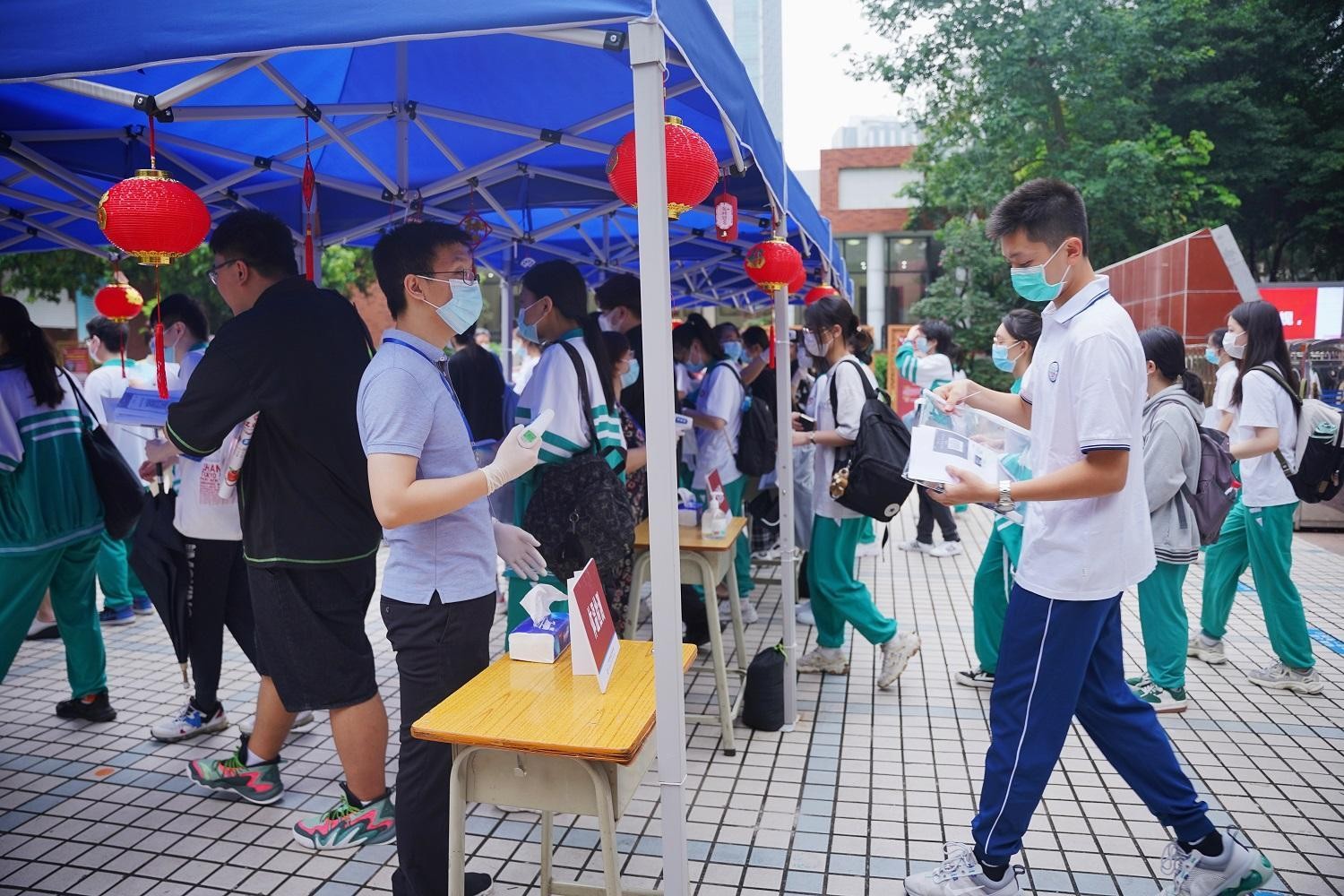广州市执信中学考场外秩序良好,现场可见许多老师、家长送考