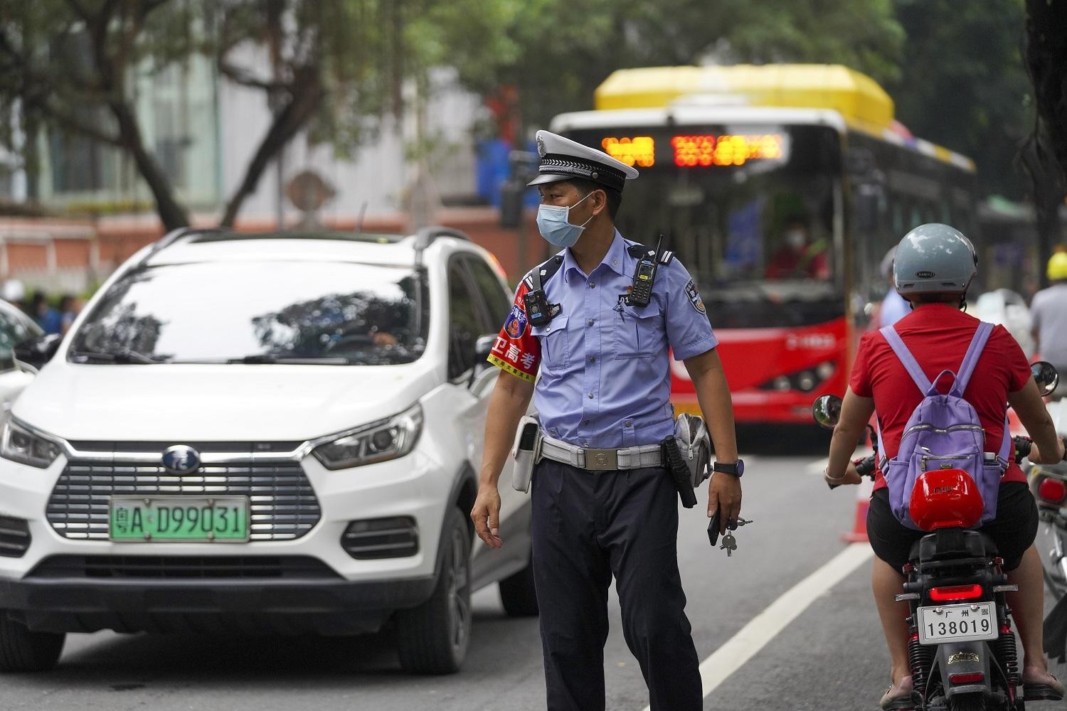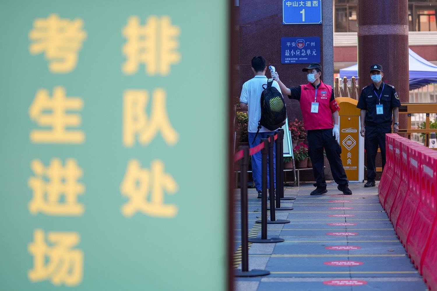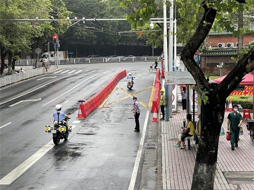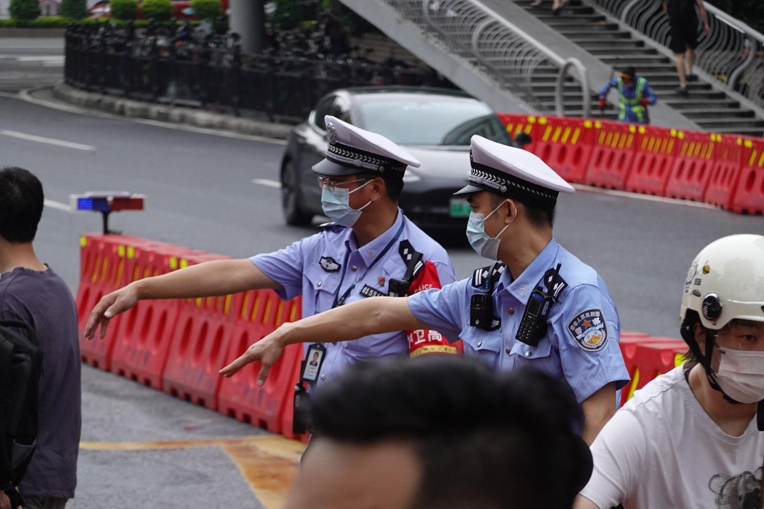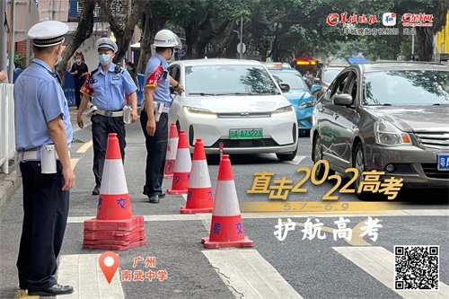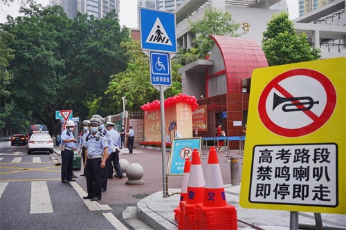 广州市执信中学考场外,交警维持秩序,考生平安顺利进入考场